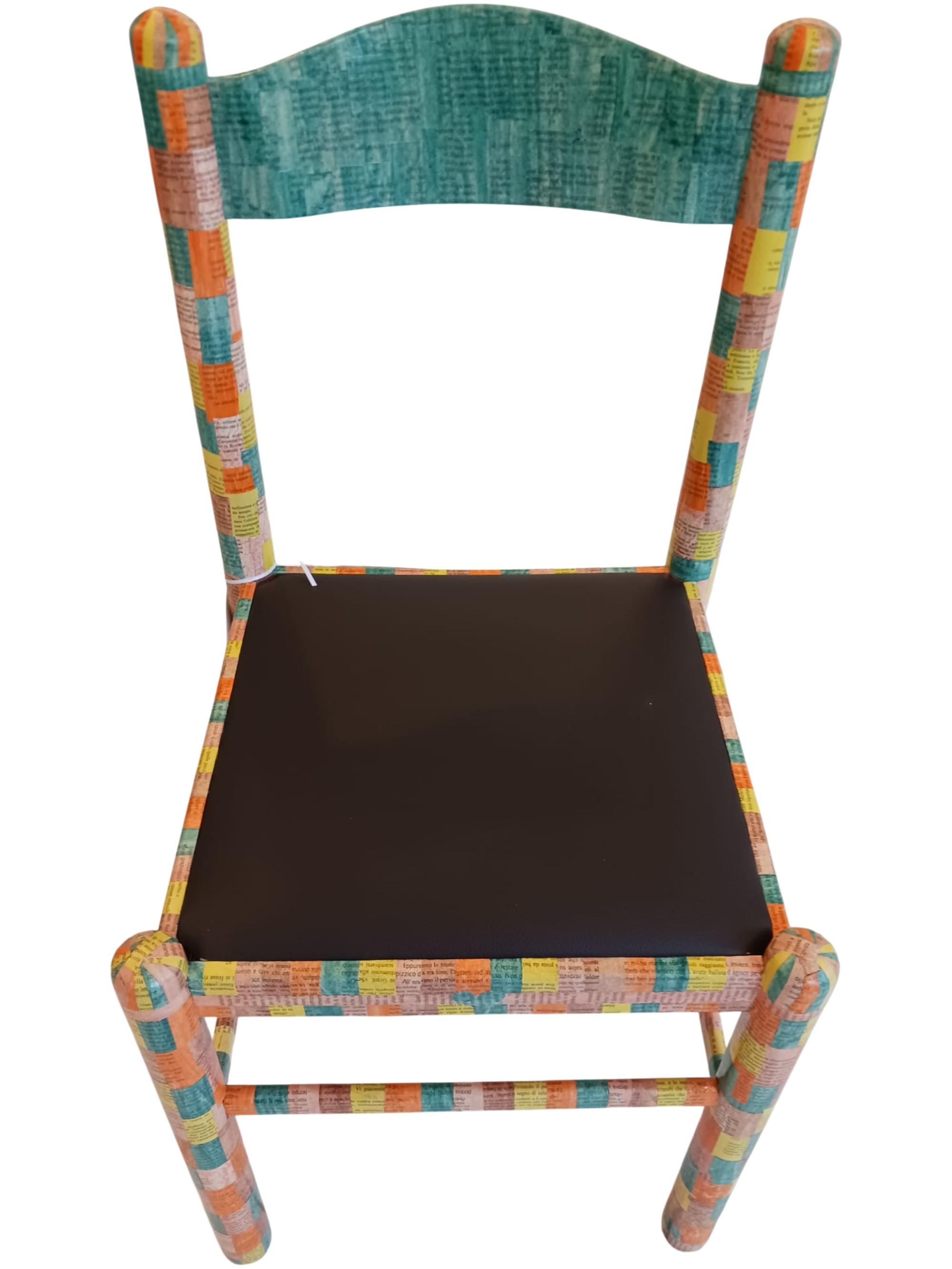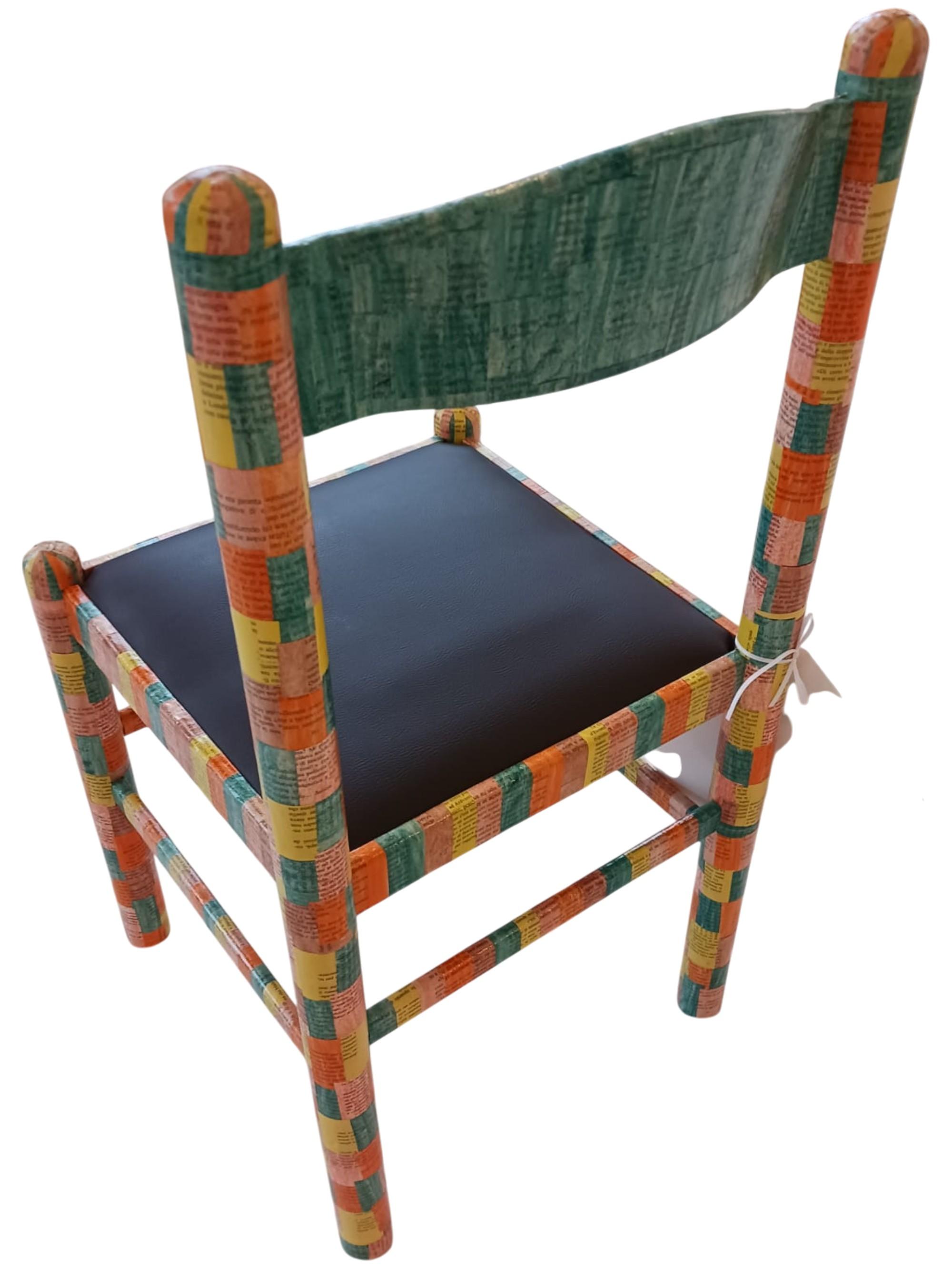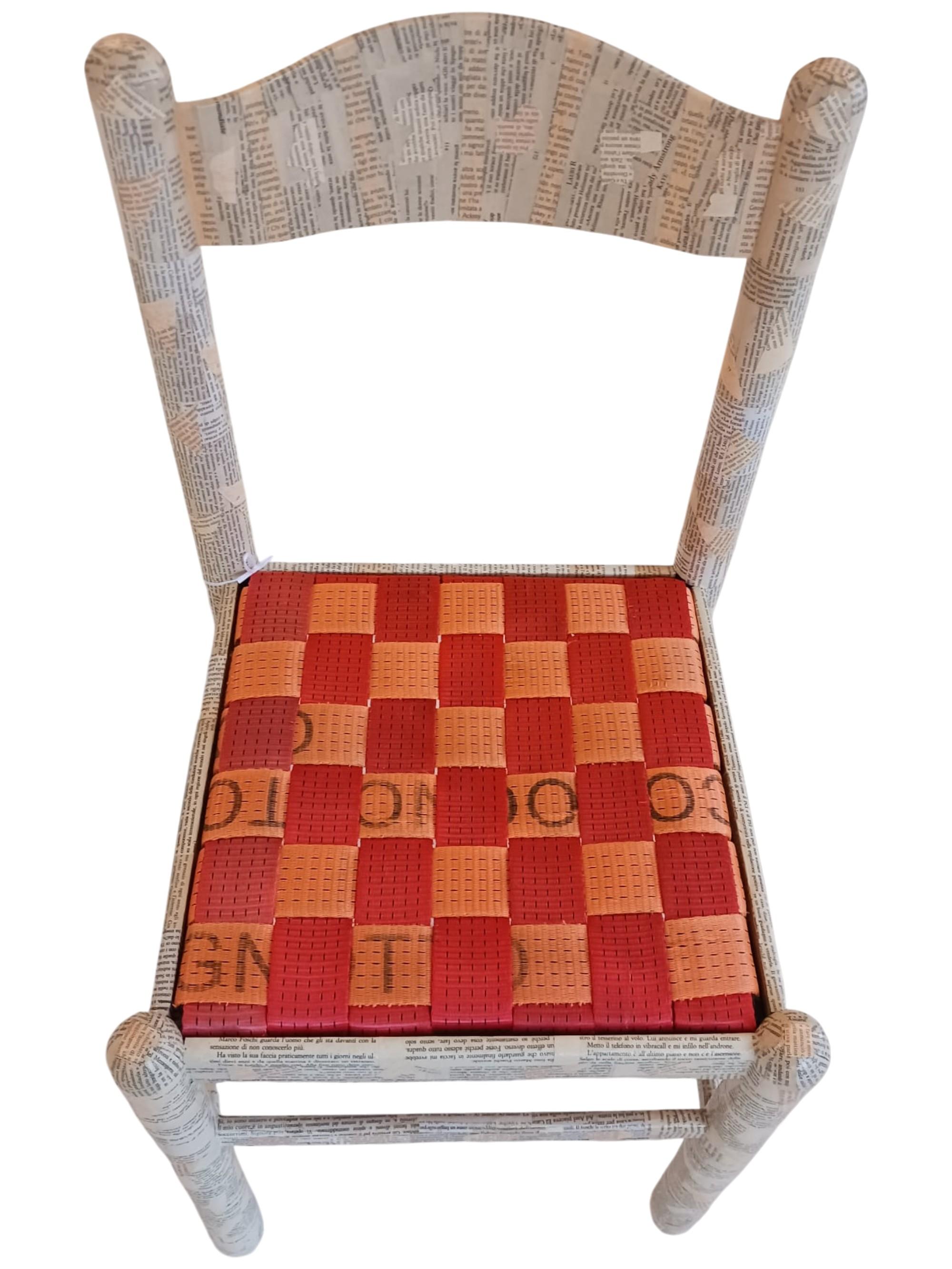 Sedia decorata con materiale da recupero proveniente dal laboratorio "Ricreati Lab"